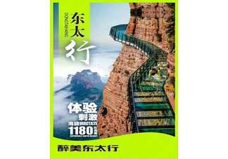 东太行景区位于河北邯郸武安市境内,因所处太行山东麓而得名。规划总面积26平方公里,最高海拔1428米,与美国科罗拉多大峡谷同属丹霞地貌。是一处集太行山雄、奇、险、峻和巧石、云海、清幽、变幻于一体的山岳型自然景区。历史上著名的129师和许多老一辈革命家曾在这里驻扎战斗、生活。东太行景区由中景信集团投资打造,修建在海拔千米上的绝壁玻璃栈道,堪称太行山人工奇观。漫步栈道,行云缭绕,犹如踏云仙境。登临东太行,“天脊揽胜,云端漫步”,人生从此豁然开朗。