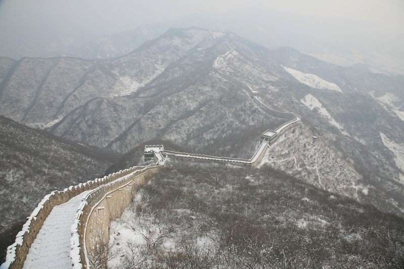 满天飞雪,玉树琼花,慕田峪长城如银龙飞舞在崇山峻岭之间